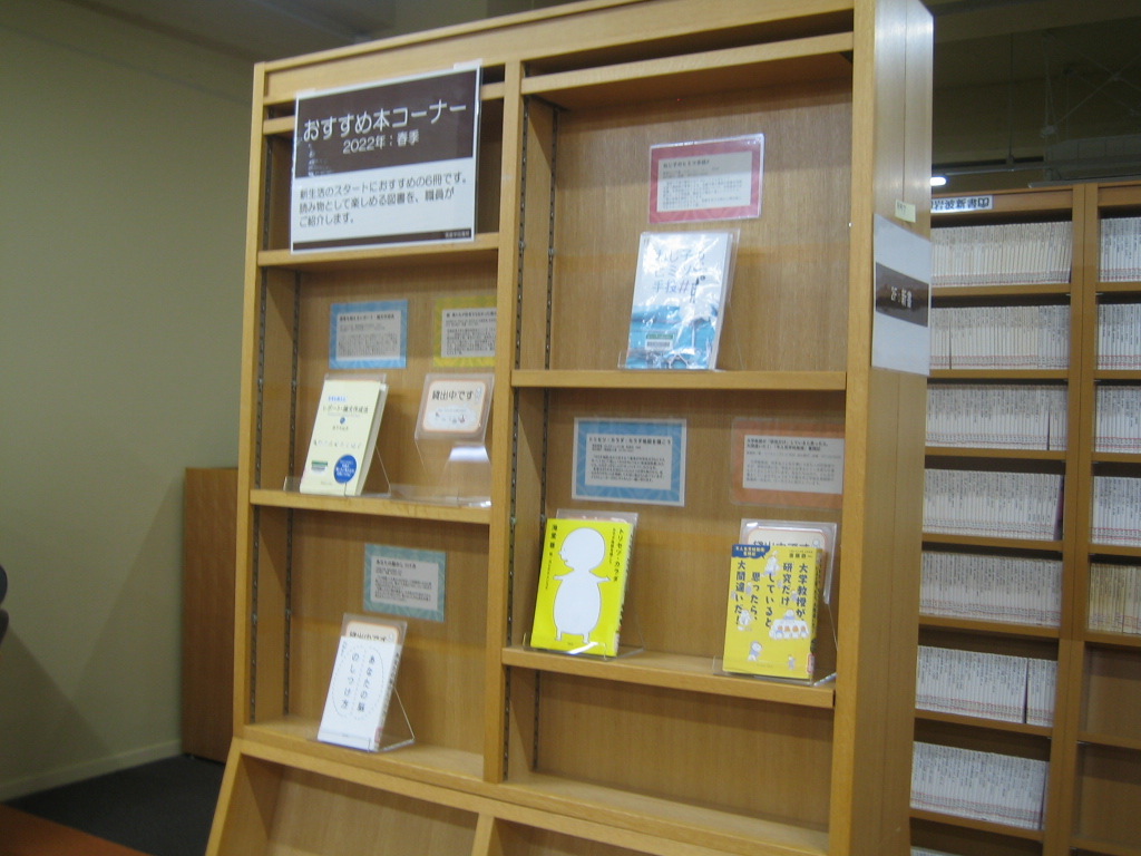 こちらは、2階の新書コーナーに隣接した、職員によるおすすめ本コーナーです。